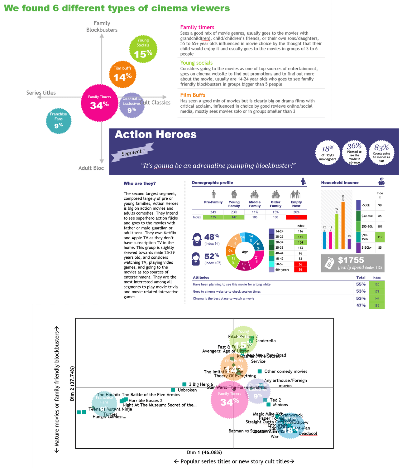 We developed a tailored segmentation solution for the leading screen advertising supplier in Australia and New Zealand. Using their rewards membership database, we classified cinema audiences based on the movies they watched and their subsequent purchase behaviours from a matched survey – enabling more precise targeting.